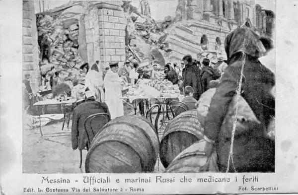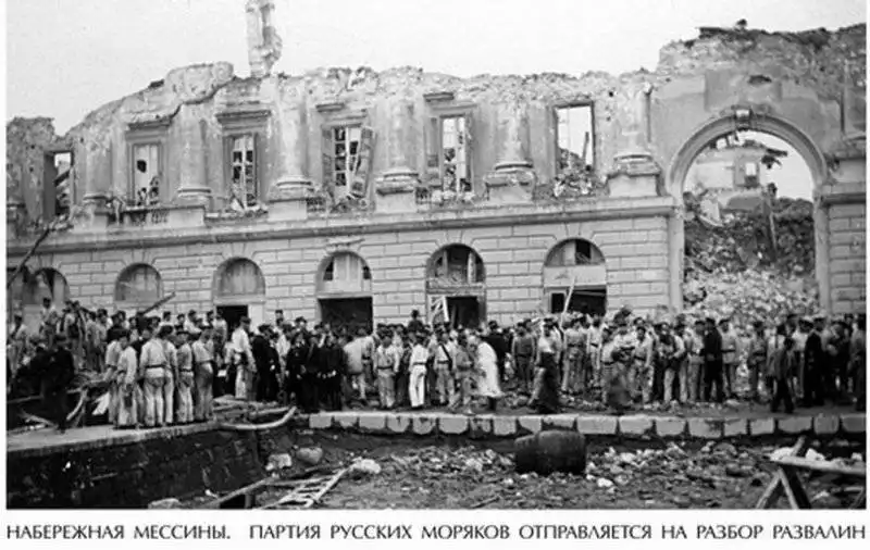 Когда корабли прибыли на рейд Мессины, моряки увидели огромные разрушения: уничтожены все дома, портовые сооружения. Оставшиеся в живых жители, обезумившие от горя, боли, потери близких, просили о помощи. Из-под завалов доносились крики раненных, в городе наблюдались многочисленные очаги пожаров.