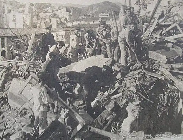 Российские моряки начали расчистку завалов. Работа осложнялась еще тем, что подземные толчки продолжались, обрушения в завалах угрожали жизни моряков, разбирающих остатки зданий.