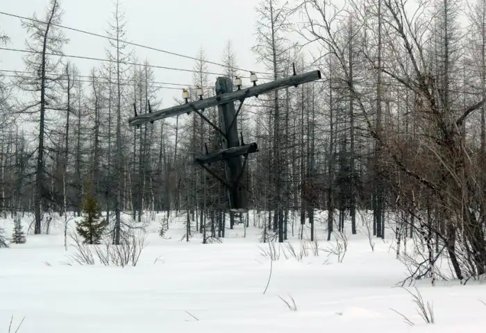Ещё одна деталь Мёртвой дороги, которую обычно упускают из виду - это телеграфные столбы. Линия связи вдоль несостоявшейся магистрали была уложена первым делом, связав с Москвой далёкий Норильск, и эти столбы тянутся вдоль Трансполярки везде: их видно из окон пассажирских поездов на Лабытнанги; они стоят вдоль зимника, вдоль мрачной грузовой линии Надым - Новый Уренгой и даже в не тронутых строителями болотах между Тазом и Пуром. И как уже говорилось, до 1990-х здесь иногда проезжала дрезина связистов, обслуживавших и чинивших эту нить.