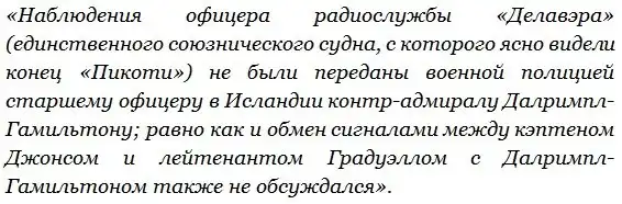 Возникает ощущение, что все участники событий действовали по принципу «инициатива наказуема». В результате было сочтено, что «Пикоти», скорее всего, присоединился к одному из конвоев с литерой НХ, но даже для подтверждения этой гипотезы не было предпринято никаких шагов. Ничего бы не поменялось и в дальнейшем, если бы не вмешалось грозное начальство.