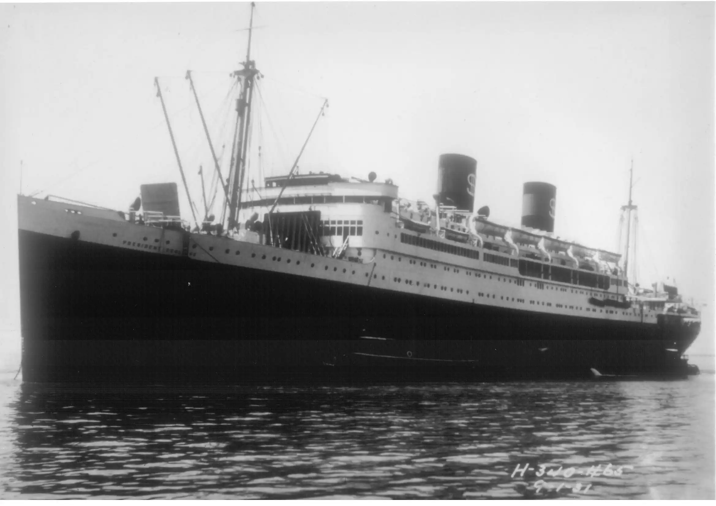 SS President Coolidge и его собрат SS President Hoover были построены в 1931ом году для Dollar Lines с расчетом на перевозку туристов в Азию и назад. Они был средних размеров и имели полное водоизмещение в 21936т и скорость в 20 узлов. Они могли перевозить 988 пассажиров - 305 первого класса, 133 второго и 405 третьего. В 30ые годы Coolidge ходил по маршруту Сан Франциско-Кобе-Манила-Шанхай, и даже совершил несколько кругосветных путешествий с выходом из Манилы на запад и приходом в Сан Франциско. В 1937ом году SS President Hoover сел на камни возле Формозы и был списан, что окончательно подорвало и так не совсем стабильное здоровье Dollar Lines. Coolidge был арестован за неуплаты кредиторам и перешел во владение к государственной American President Lines которая до начала войны управляла всеми кораблями Dollar Line.
