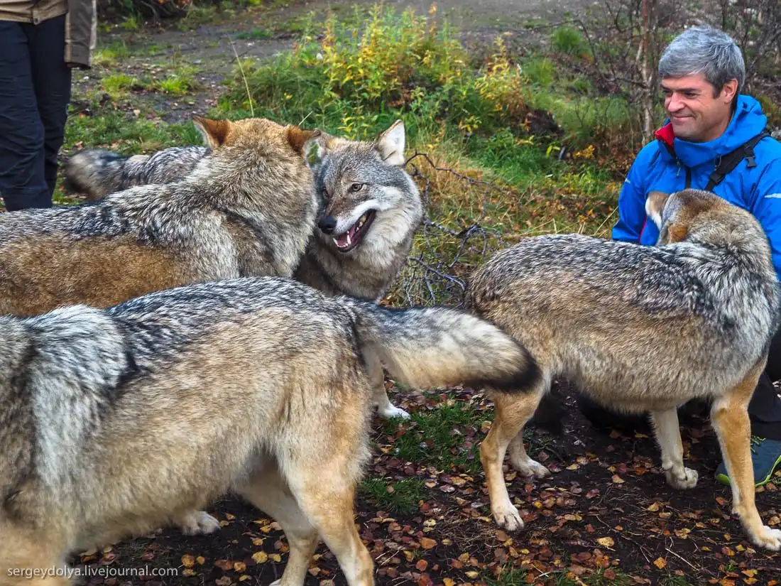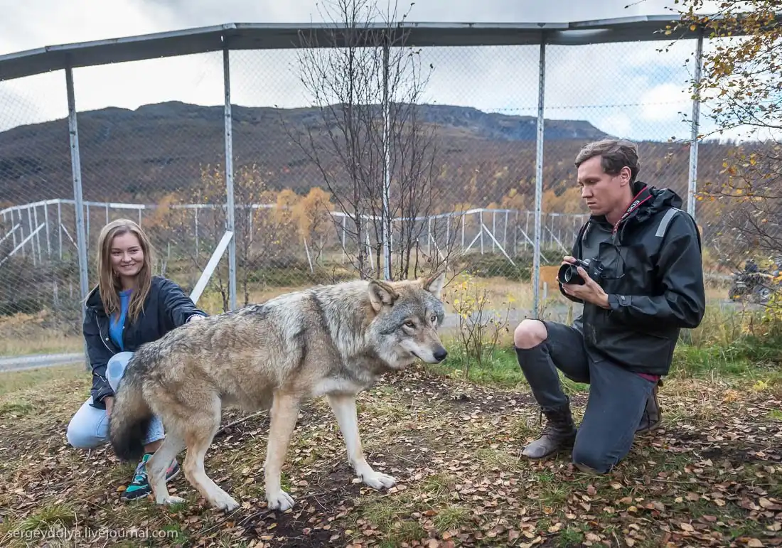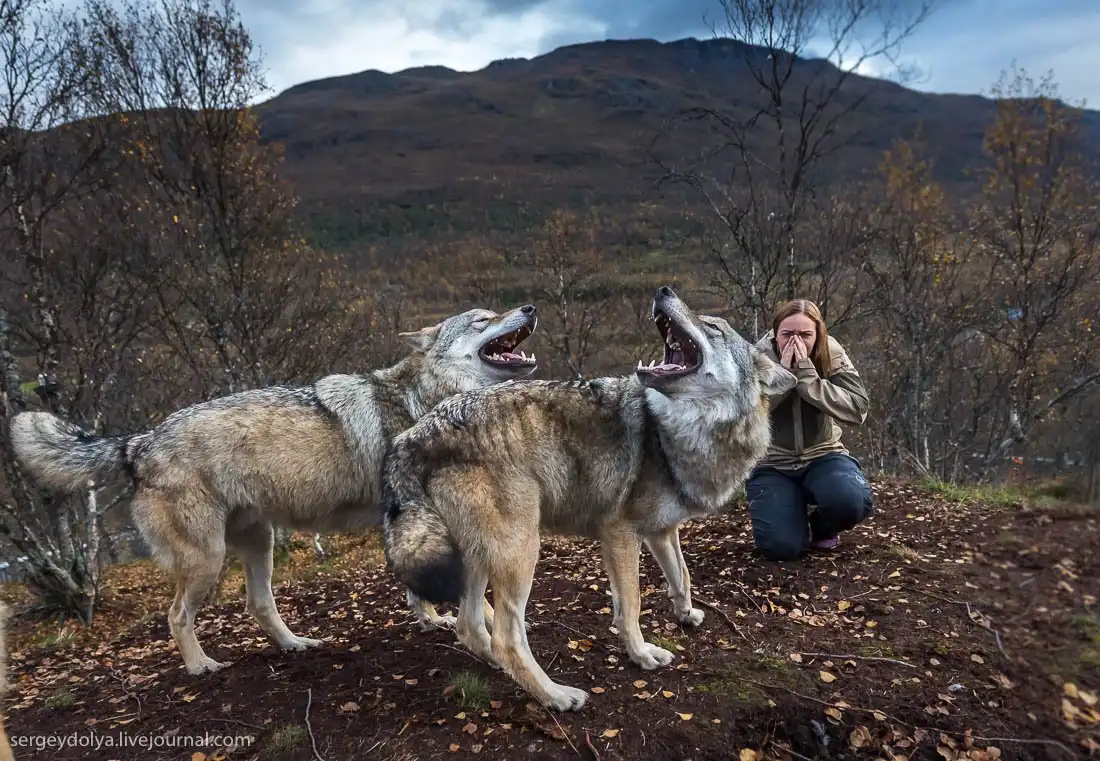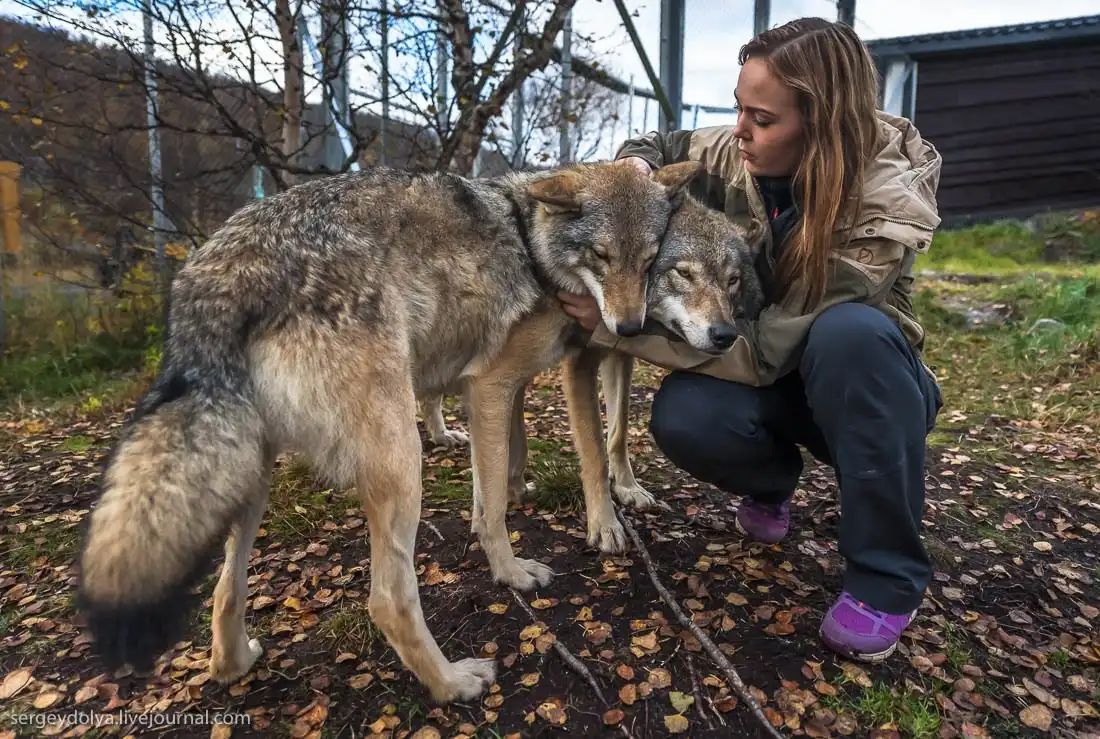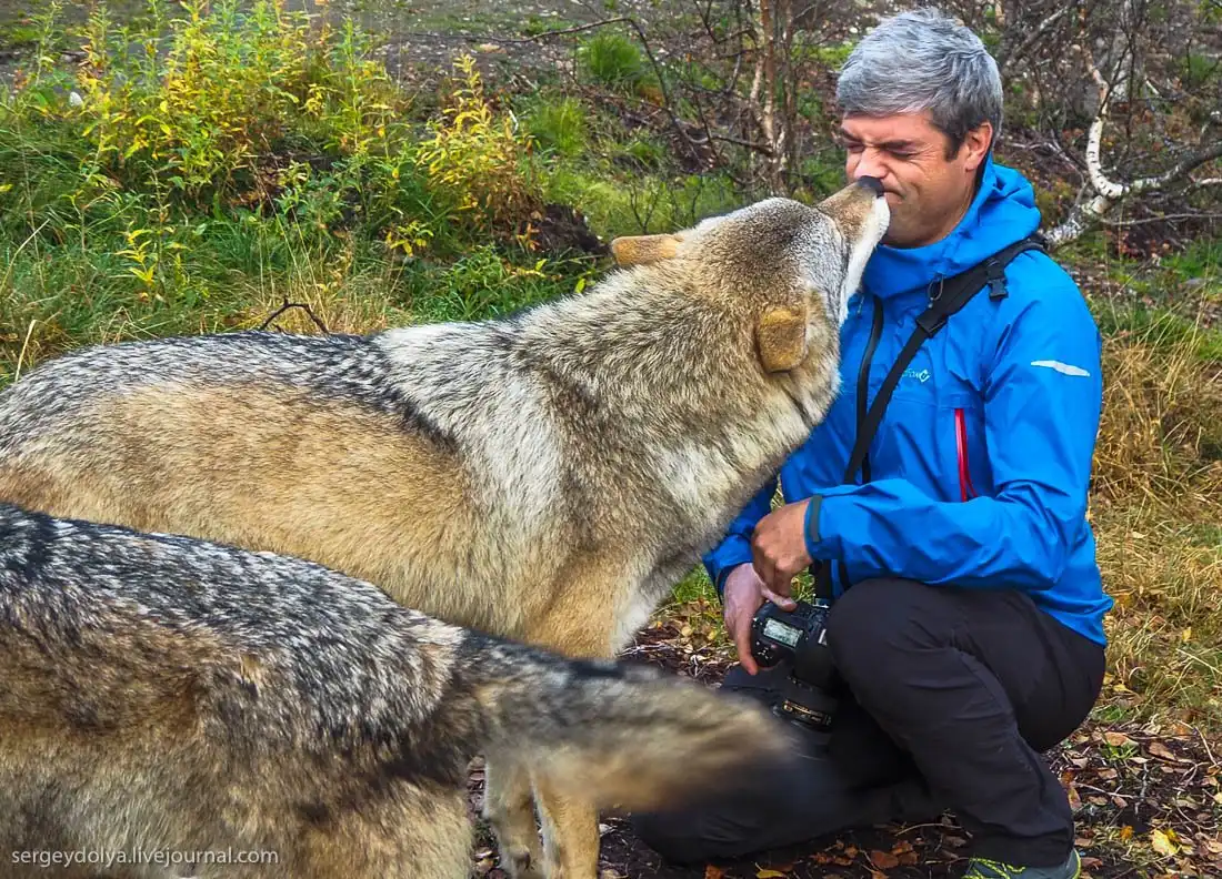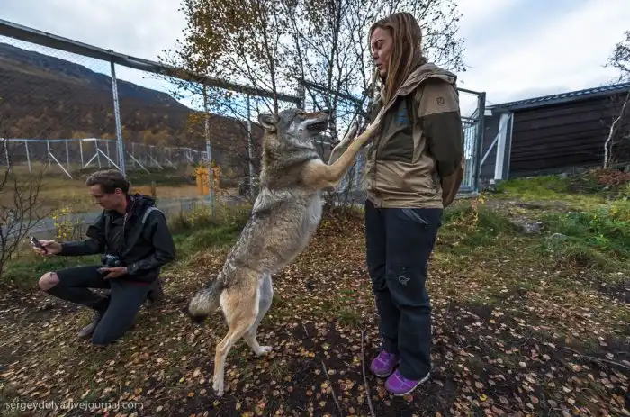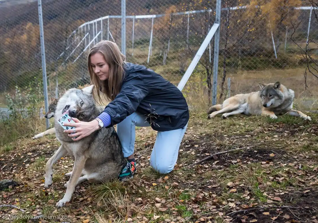 На Лофотенских островах в Норвегии есть Полярный парк, где посетителям предлагается принять участие в экстравагантном аттракционе "Поцелуй волка".