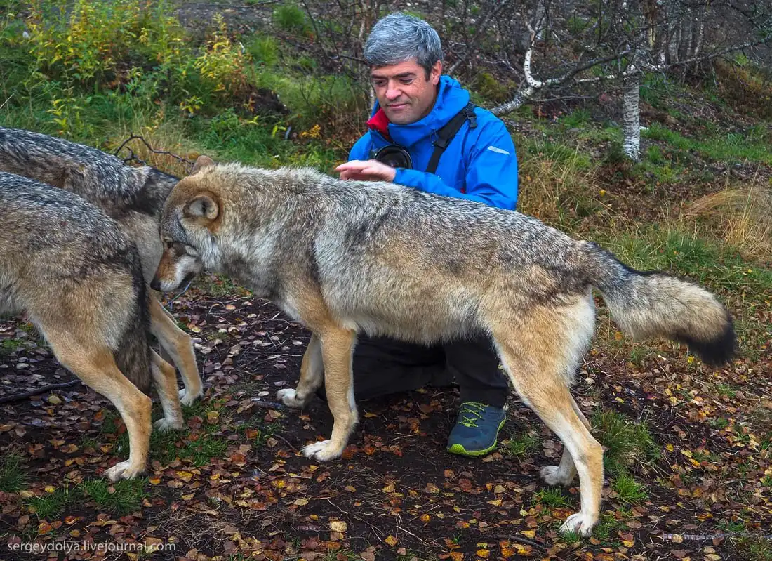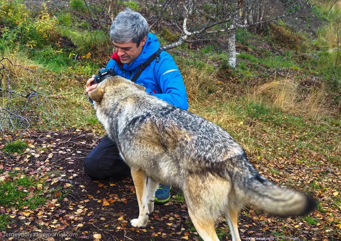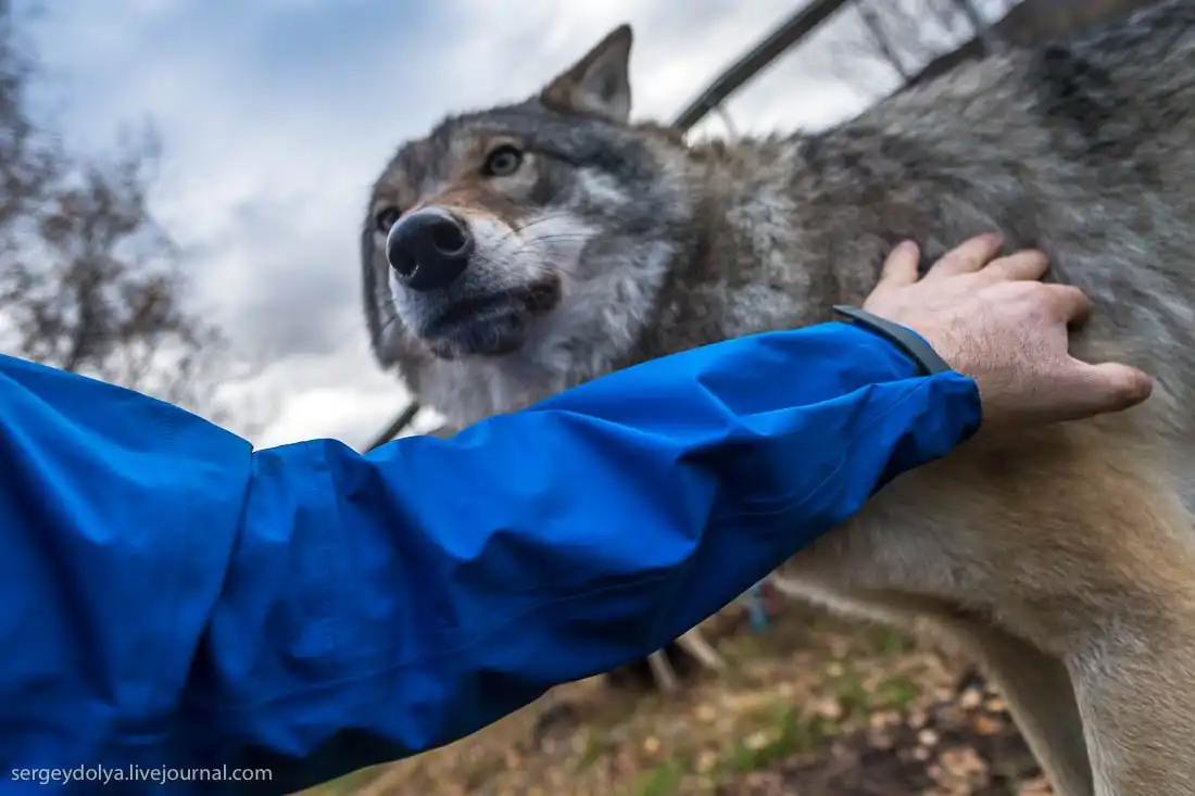 Инструктор сказал, что нужно сесть на колени и ждать, пока волки не освоятся и подойдут поближе: