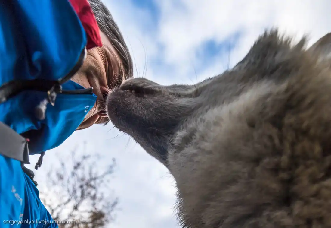 Волки целуются не на потеху гостям - у них, таким образом, происходит знакомство. Первое, на что обращаешь внимание - от волков совершенно нет никакого запаха: