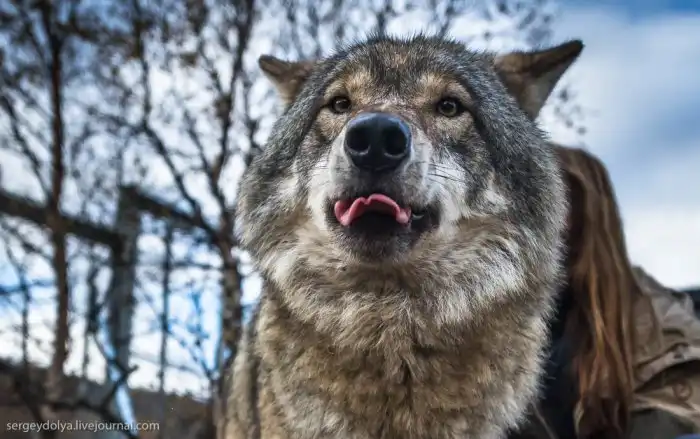 Настя сначала боялась, потом привыкла и начала делать селфи с хищниками. Волки подыгрывали: