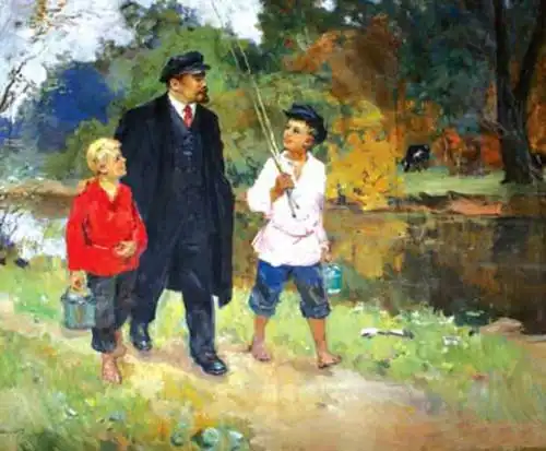 История не донесла имени великого художника, который за ночь изобразил самого Ленина на берегу какого-то озера. Говорят, раскопали впавшие в ступор заводчане-сдаточники где-то в недрах 55-го цеха полупьяного мужичка, который с завода через вахту пройти домой побоялся и улегся переспать в малярской кондейке.