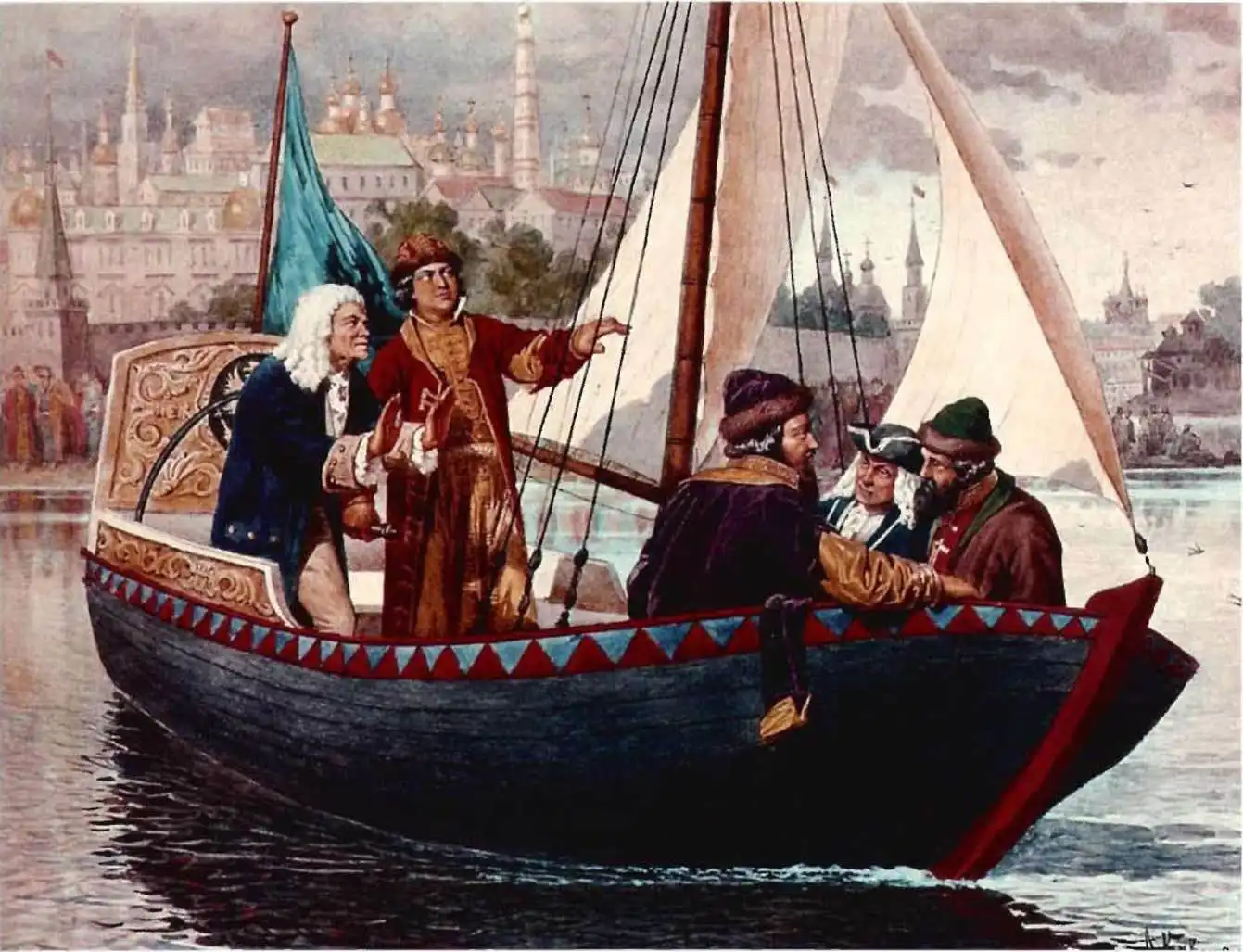 Петр I на ботике на реке Москва. Автор: Кившенко А.