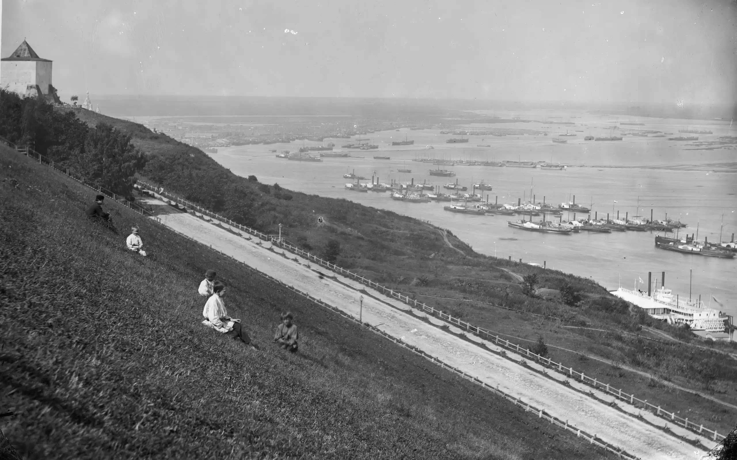 Кстати, фото позапрошлого века, а вот качество картинки- отменное. Можно на оригинале рассмотреть даже пароходы, что идут по Волге... (кликабельно)