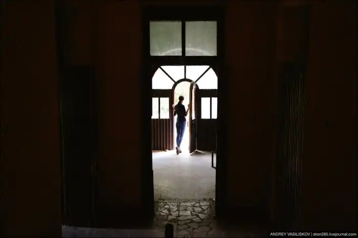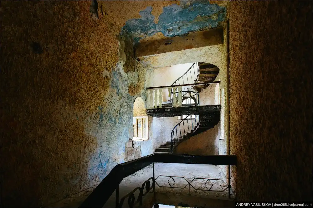 Замок был построен в 1936 году и построен был на совесть. Даже сейчас, судя по внешнему виду, достаточно косметического ремонта и можно работать. Давайте заглянем внутрь.