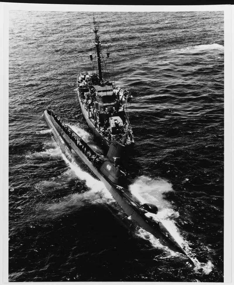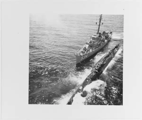 Silverstein отходит от поврежденной лодки. Весь экипаж уже на