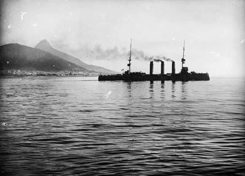 Крейсер Kent сопровождает конвой из Кейптауна в Лагос, 6 марта 1918 года