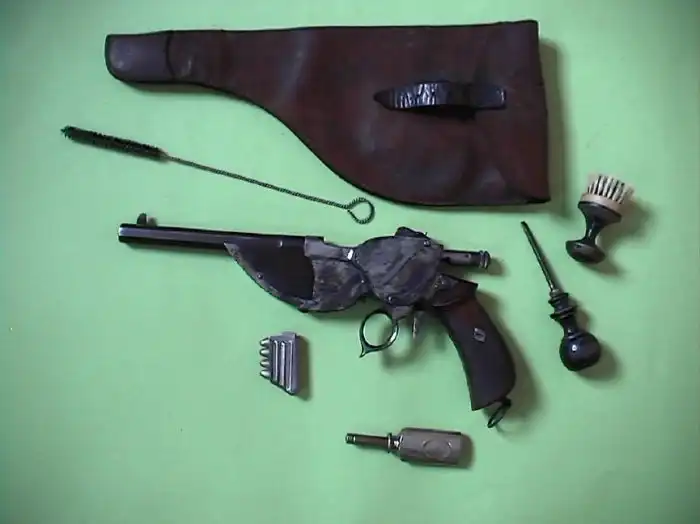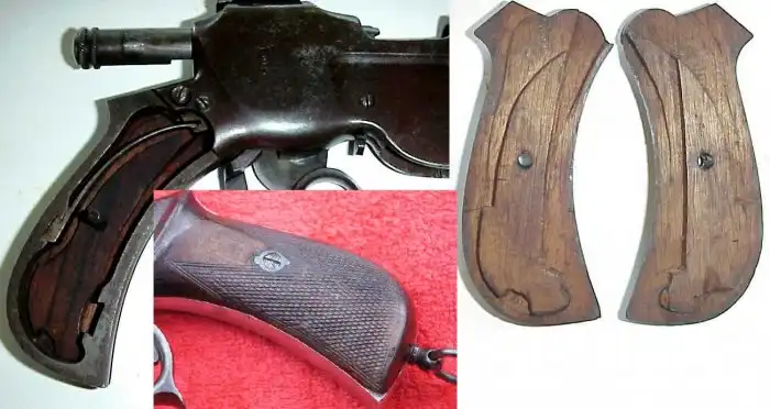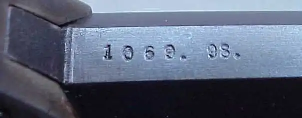 На пистолете наносилось клеймо с номером протокола испытательных стрельб (например «1069») и годом проведения испытания (например «98» — 1898 год).