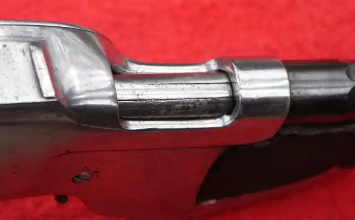 Рамка пистолета с тыльной стороны выглядела асимметричной, благодаря особенности конструкции ударно-спускового механизма и крышки с левой стороны рамки. Металлические части пистолета часто имели красивый цвет с переходами различных оттенков, получавшийся в результате закалки деталей оружия.