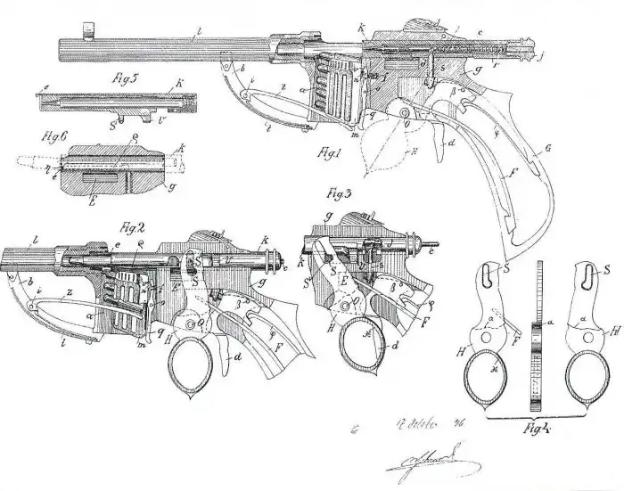 1896 год авторы книги Josef MÖTZ и Joschi SCHUY связали с датой получения патента. Густавом Биттнером 17 октября 1896 в патентном ведомстве Праги получено свидетельство на конструкцию пистолета, заряжание которого происходило с помощью специального рычага.