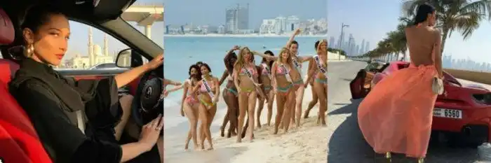 Дубай, как город миллионеров, пользуется большой любовью красавиц, каждая из которых мечтает подцепить шейха. Здесь отдыхали практически все обладательницы звания "Мисс Вселенная". Топ-модель Белла Хадид - постоянная посетительница сообщества "Богатые детишки Дубая". Но и местные девушки не уступают заезжим красавицам: по мнению пользователей службы знакомств Tinder, именно в Дубае живут самые красивые пользовательницы сети.