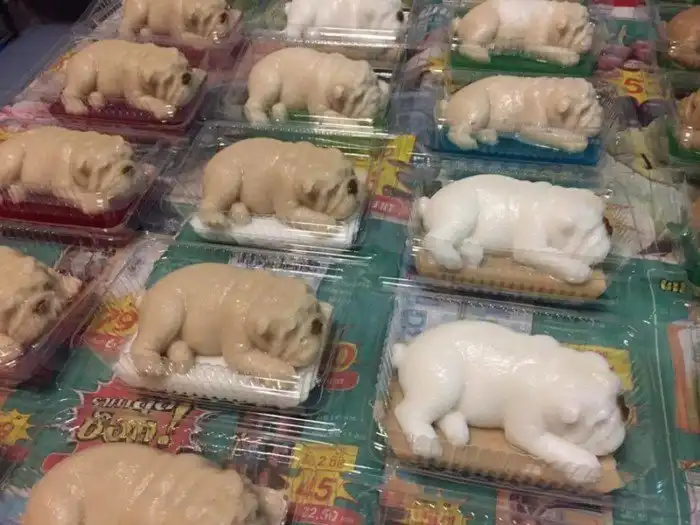 Пудинг есть пудинг, он вкусный и выпускается с разными подливками, как по цвету, так и по наполнению. Основное блюдо укладывается на подстилку из разноцветного желе и продается за 25 тайских бат ~ $0,7. Пока в Интернете спорят, этично ли такое откушивать, новинка пользуется спросом среди рядовых покупателей в лавке.