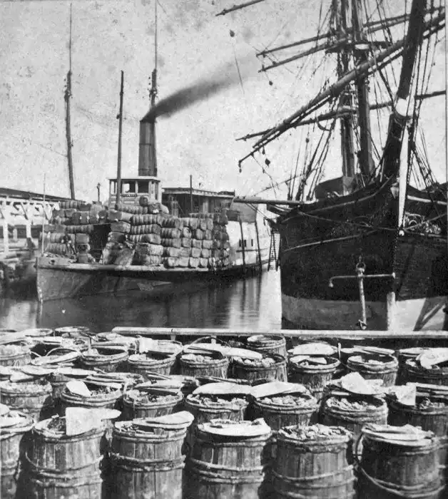 "Плантатор" (слева) под тюками с хлопком, фото периода Гражданской войны.