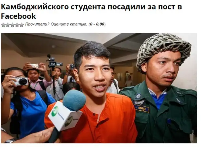 Студент Камбоджийского университета был заключен в тюрьму на 18 месяцев за то, что попросил общественность присоединиться к его «цветной революции» и подстрекал к антиправительственным преступлениям, согласно посту на Facebook.