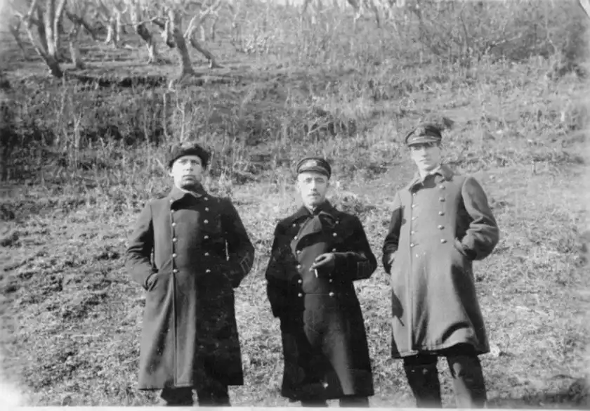 На фото, слева направо- комиссар экспедиции Доминиковский М.А.,руководитель