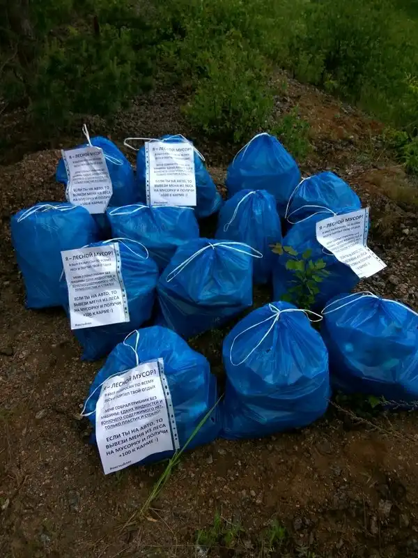 Вот таким вот добрым делом занимается один сознательный гражданин, желающий очистить от мусора леса родного края. Активист отправляется на места стихийных микро-свалок и собирает оставленный мусор в пакеты, прикрепляя к ним записки, адресованные автомобилистам. Так как у самого автора снимков машины нет, то он просит вывезти мусор тех, у кого она есть, и, как правило, мусор исчезает с оставленного места в течение 2 - 3 дней. Желающих помочь природе оказалось немало и совместными усилиями лес действительно становится немного чище.