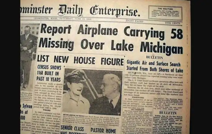 В 1950 году самолет авиакомпании Northwest Orient Airlines совершал рес 2501 из Нью-Йорка в Сиэтл. На борту находились три члена экипажа и 55 пассажиров. Это произошло в районе озера Мичиган: сначала самолет запросил разрешения на снижение до 2 500 футов, а затем пропал с радаров. Надо ли говорить, что в озере Мичиган потом его искали чуть ли не с лупой, но не нашли ни одного обломка.