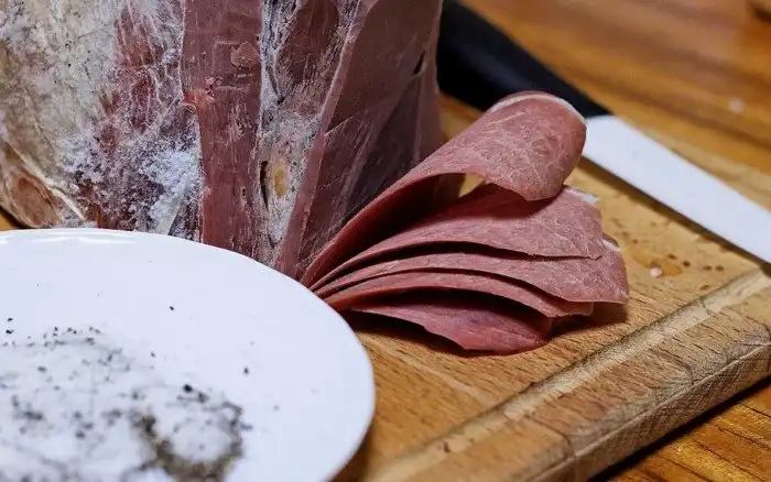 Для строганины также используют и оленину. Этот вид строганины наиболее распространён среди якутов.