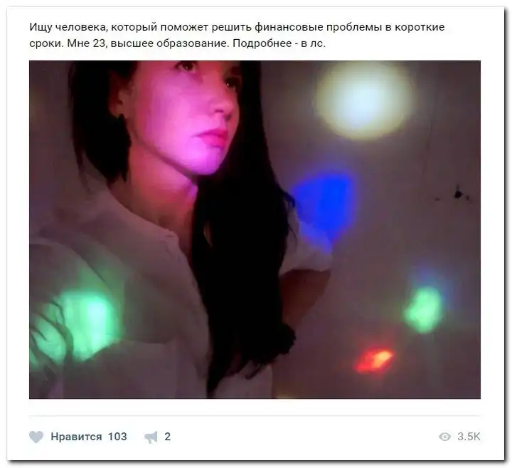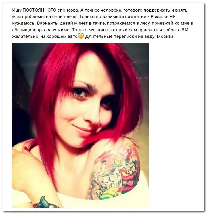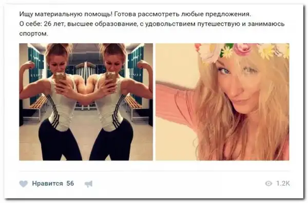 Эти наивные девушки хотят красиво жить и ничего не делать. Они надеются, что богатые спонсоры увидят их красоту, и в очередь выстроятся, предлагая свою помощь. Некоторые даже пишут, что никого интима, им должны заплатить чисто за приятное общение.