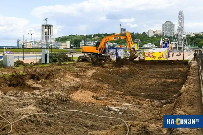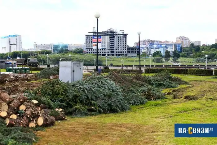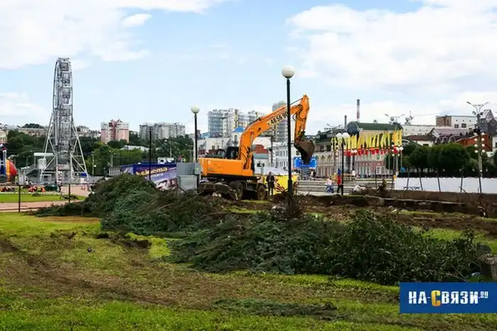 В Чебоксарах пожертвовали елями и газоном ради колеса обозрений и фастфуда