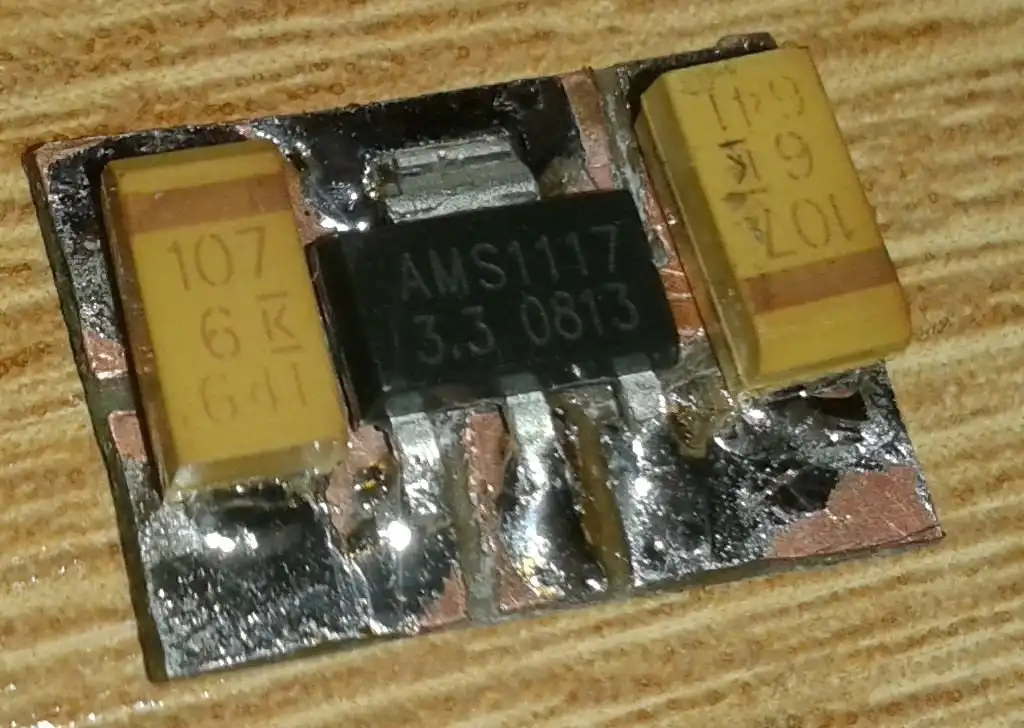 Оптимальное питание модуля 3.3В, поэтому монтируем LDO AMS11173.3, модуль потребляет 20mA максимум, получаем 50 кратный запас.