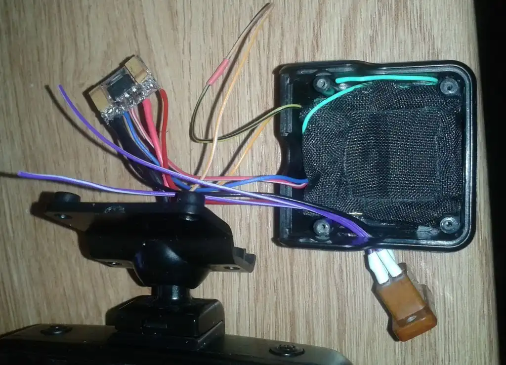 Монтируем модуль в держатель регистратора на двухсторонний скотч и изолируем электронику.
