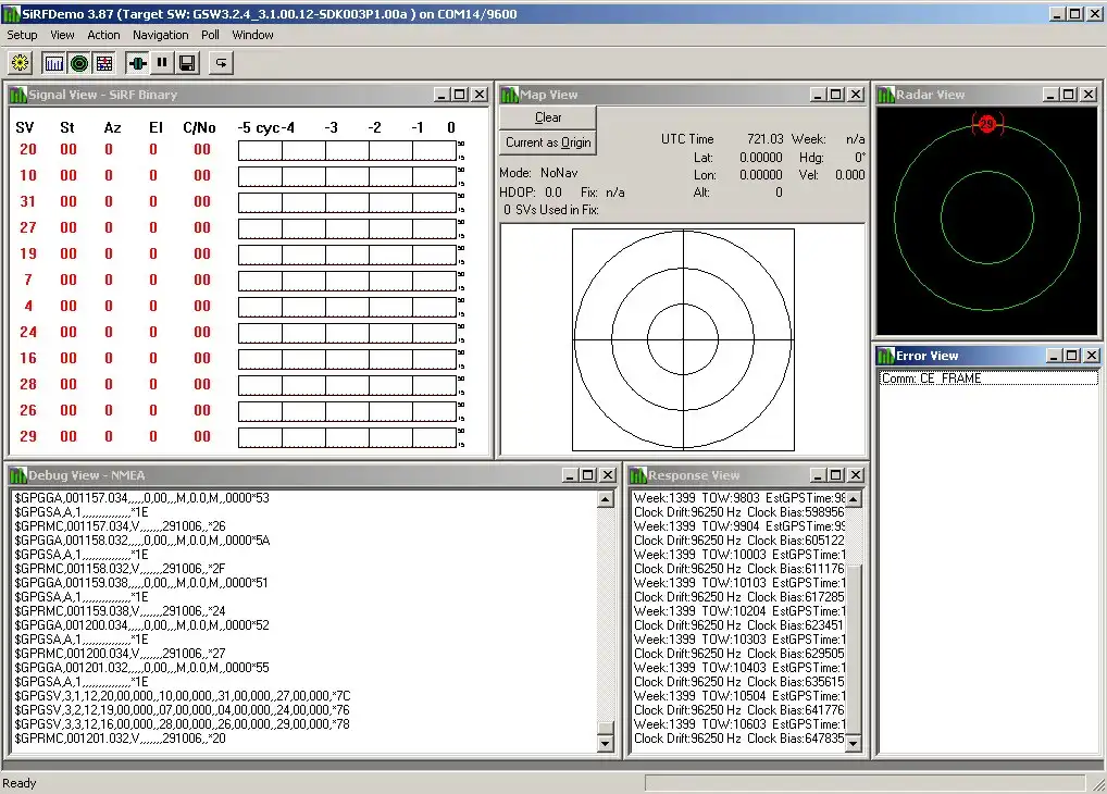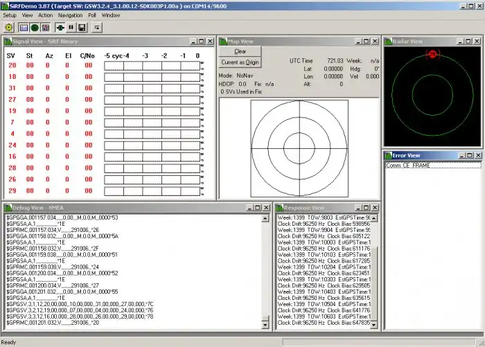 Загружаем программу SIRF Demo, и выставляем скорость 9600. В комнате не определило местоположение.