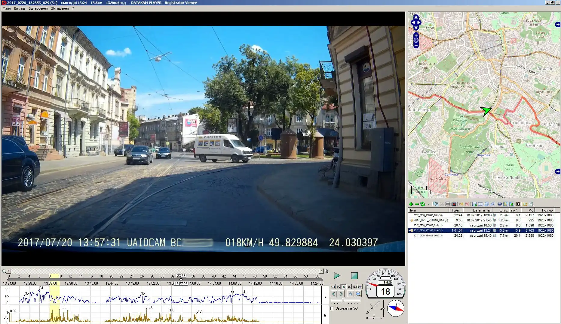 Пересматриваем в программе въюверы (Datacam Player) запись координат, скорости, расстояний.