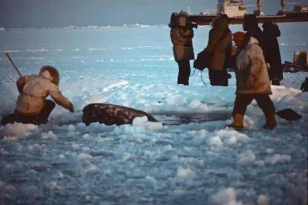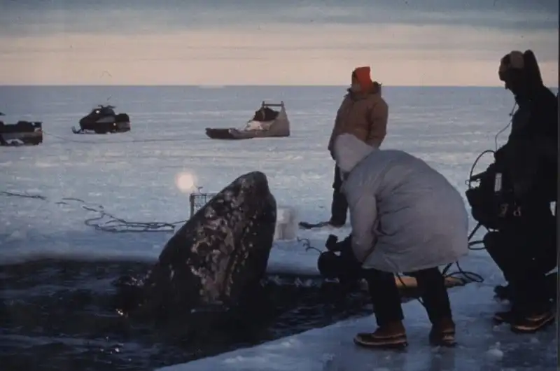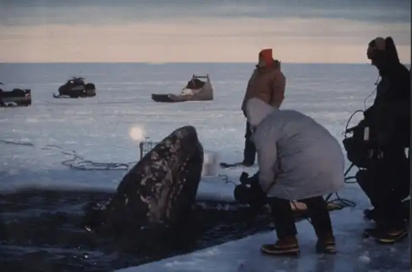 7 октября 1988 года охотник Рой Ахмаогак, эскимос-инупиат, обнаружил трёх серых китов, запертых в полынье в поле пакового льда в Море Бофорта вблизи мыса Барроу в штате Аляска.