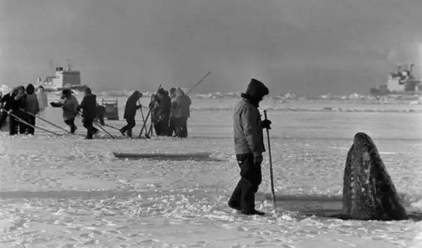 Американские спасатели были в отчаянии. Они начали прорубать канал для выхода китов в открытое море, но оказалось, что пространство между рифами забито стамухами — льдинами, сидящими на мели до самого дна.