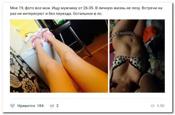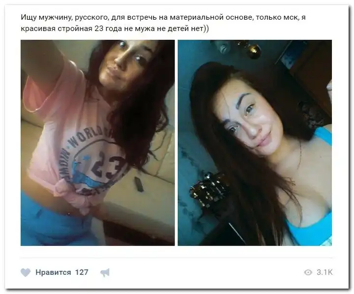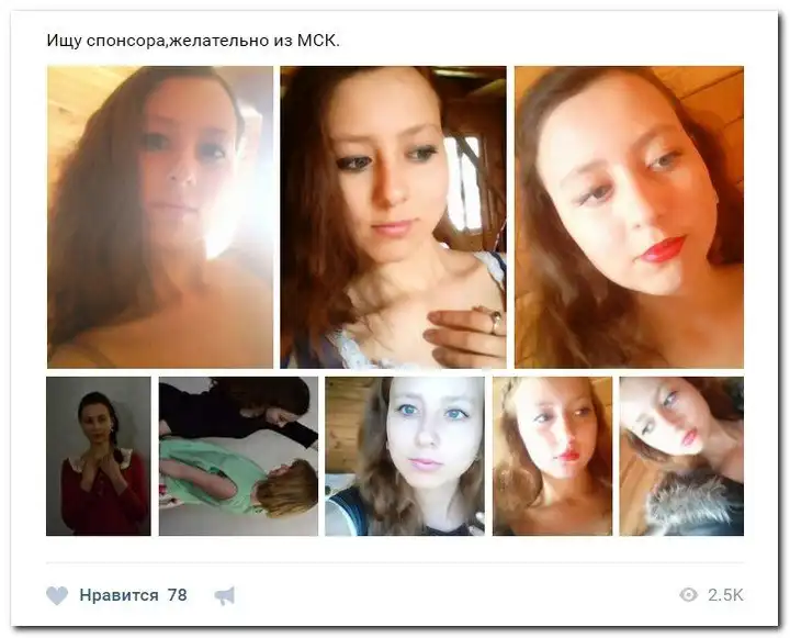 Эти наивные девушки хотят красиво жить и ничего не делать. Они надеются, что богатые спонсоры увидят их красоту, и в очередь выстроятся, предлагая свою помощь. Некоторые даже пишут, что никого интима, им должны заплатить чисто за приятное общение.