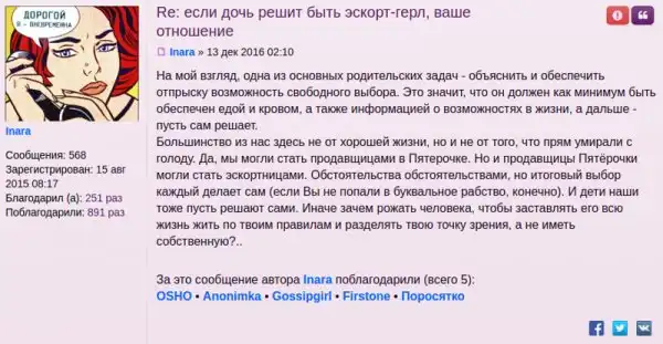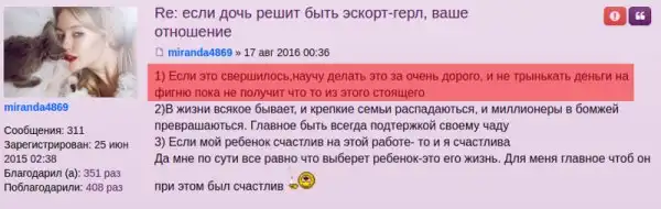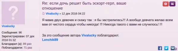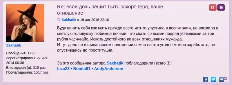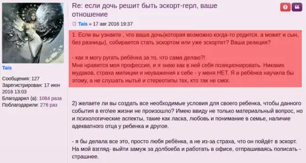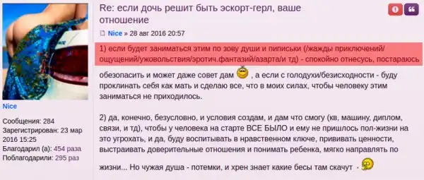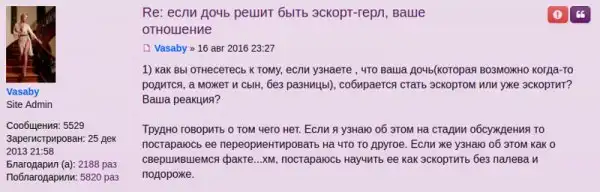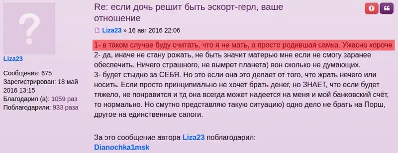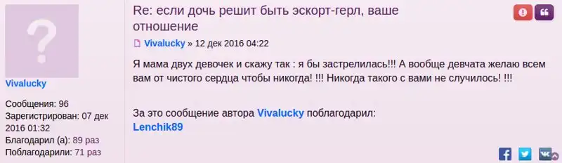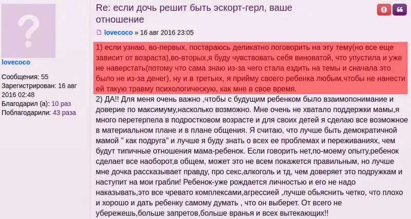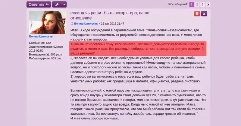 Безумства на форуме эскортниц: "что если дочка начнёт ублажать мужчин за деньги?"