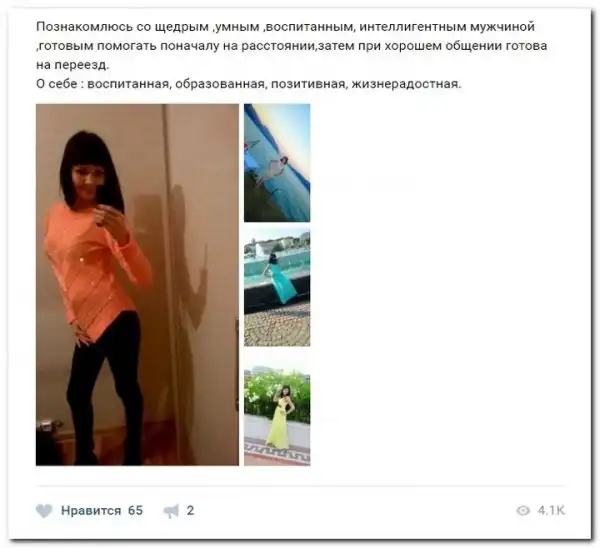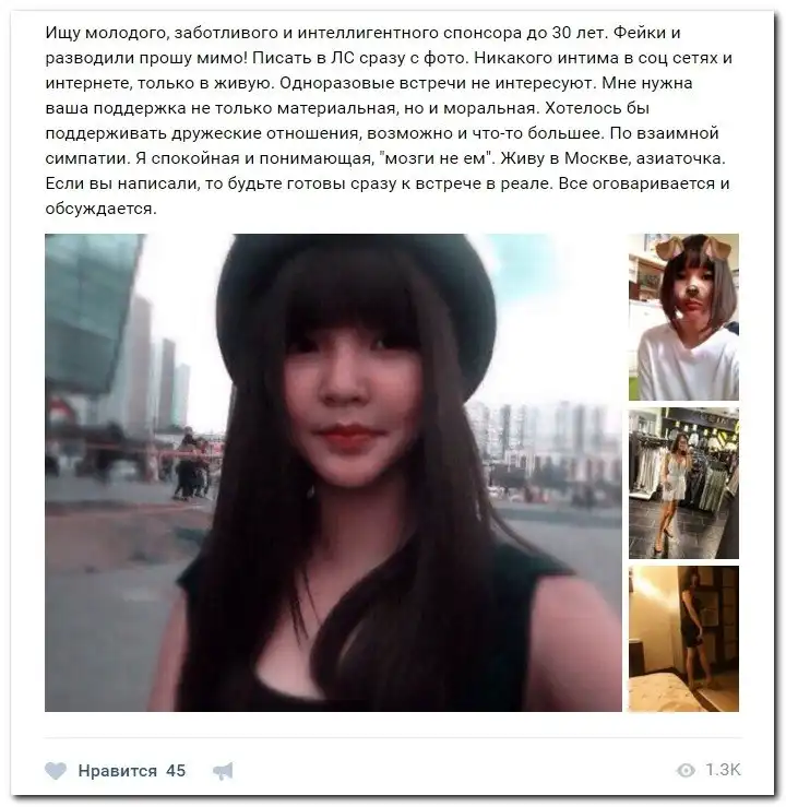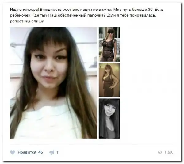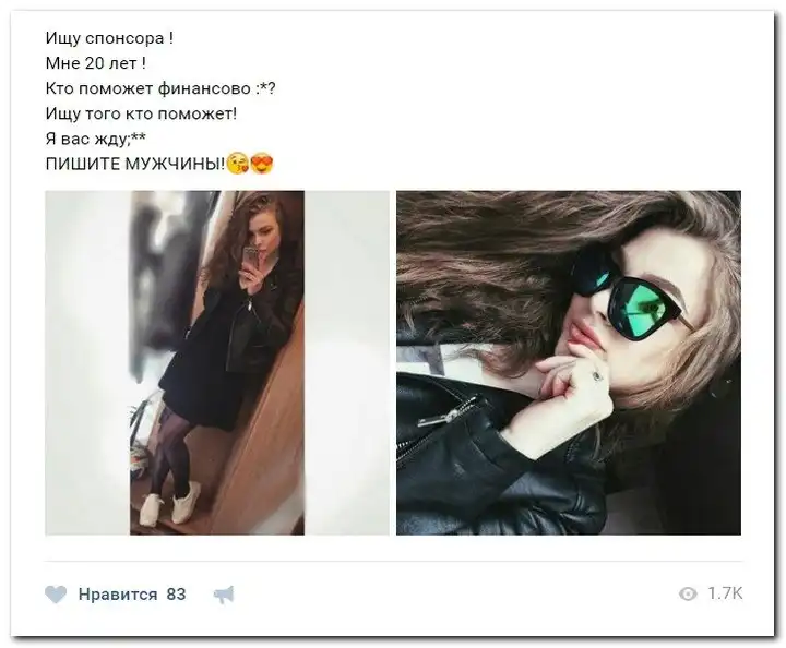 Эти наивные девушки хотят красиво жить и ничего не делать. Они надеются, что богатые спонсоры увидят их красоту, и в очередь выстроятся, предлагая свою помощь. Некоторые даже пишут, что никого интима, им должны заплатить чисто за приятное общение.