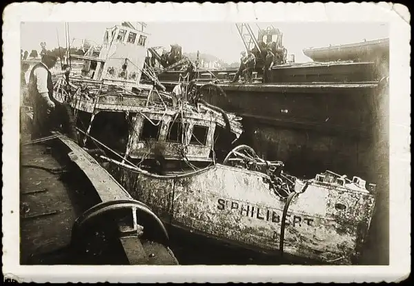 «Сен-Филибер» — очень маленький пароход. Он был построен в 1923 году на верфях Сен-Назера исключительно с одной целью: служить прогулочным судном по рекам или закрытым озерам. Своим высоким мостиком и нескладно торчащей трубой он больше напоминал буксир, чем пароход и был не особо устойчив — стоило большей части пассажиров перейти на одну сторону, как это сразу отмечалось заметным креном. Однако все эти годы с грехом пополам «Сен-Филибер» выполнял свои функции, обслуживая регулярную пассажирскую линию Нант — Сен-Назер, а по выходным — катая по Луаре толпы беспечных отдыхающих. Кстати говоря, до сих пор остается загадкой, каким образом владельцы маленького и валкого «Сен-Филибера» умудрились получить разрешение на перевозку одновременно пятисот пассажиров?...
