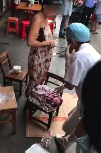 Китаянка родила на улице и как ни в чем не бывало побрела домой