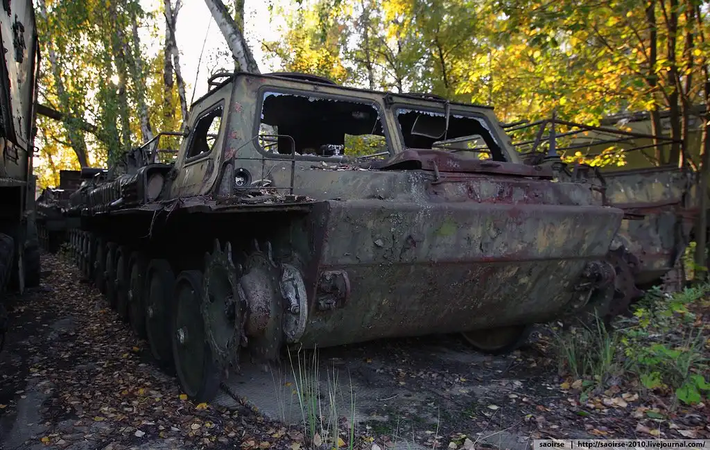 Тишина стояла гробовая и пройдя немного по лесу я уже оказался перед брошенной техникой.