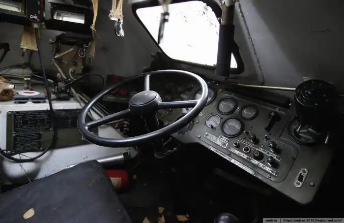 Место водителя. Вообще в БТР очень тесно, фотографировать было очень сложно. К тому же в нем были навалены разные приборы для экипажа.