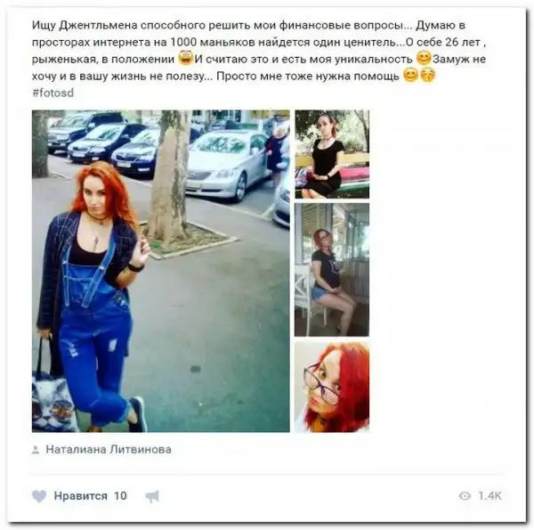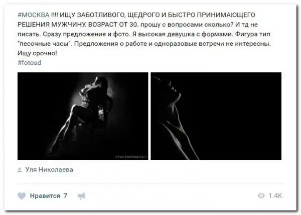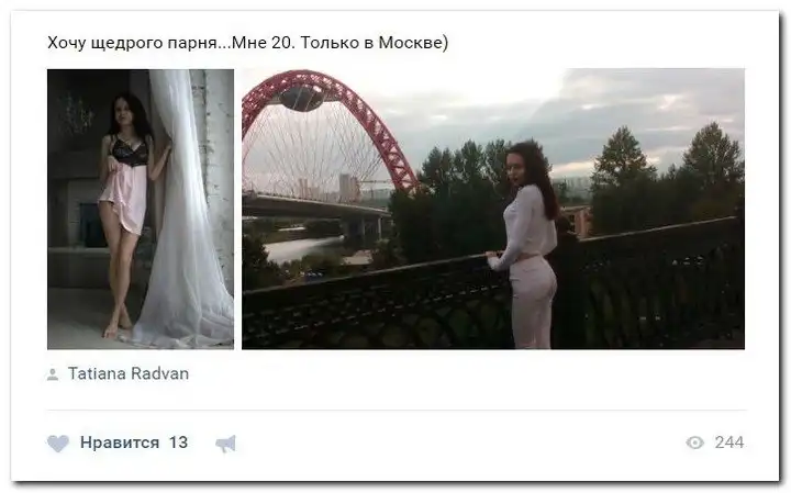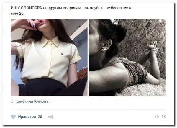 Эти наивные девушки хотят красиво жить и ничего не делать. Они надеются, что богатые спонсоры увидят их красоту, и в очередь выстроятся, предлагая свою помощь. Некоторые даже пишут, что никого интима, им должны заплатить чисто за приятное общение.