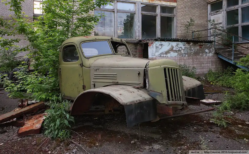 Возле главного корпуса валяется кабина [ЗИЛа-157]. Этот грузовик выпускался аж 36 лет (1958-1994).