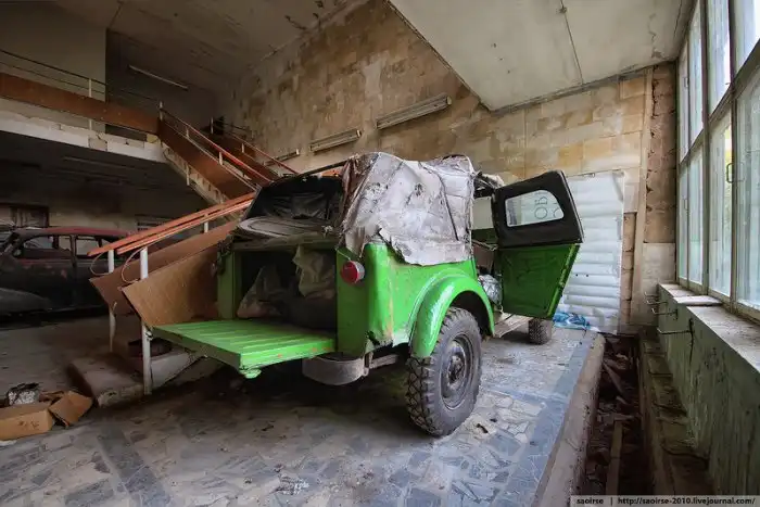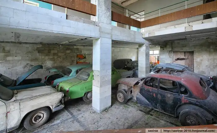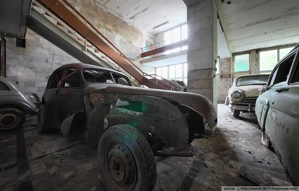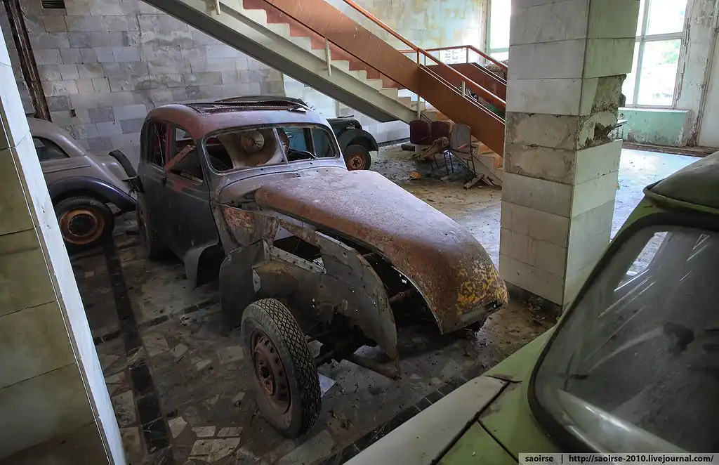 А вот в третьем корпусе нас поджидал сюрприз. Вместо разрухи и рисунков, в холле стояли старые автомобили.