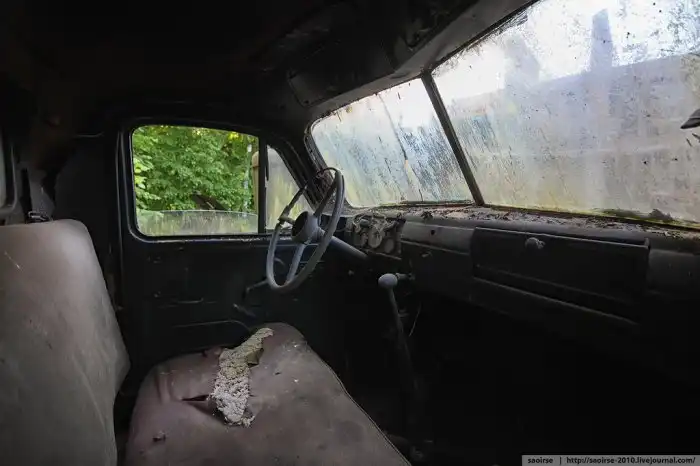 Первым нам попался старенький ГАЗ-М (в народе "эмка"), который стоял недалеко от заброшенных корпусов пионерского лагеря. Этот автомобиль производился в 1936-1943 годах и являлся копией американского [Ford Model B 40A Fordor Sedan]