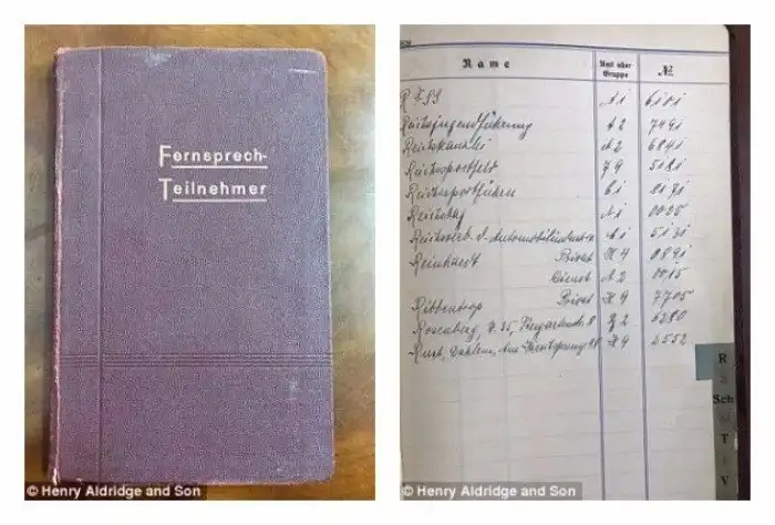 Адресная книга с телефонами видных нацистских деятелей была найдена 72 года назад британским офицером в канцелярии Рейха. В ней более 200 контактов, но есть одно явное упущение - не указаны контакты Адольфа Гитлера. Считается, что это вещь могла принадлежать именно ему.