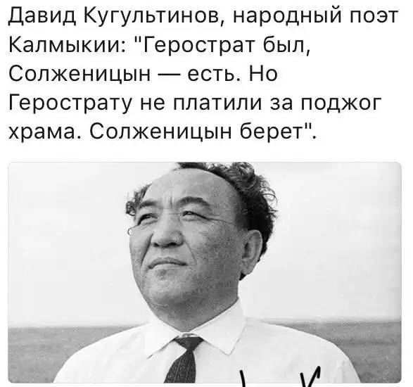 Просто интересно, а вы свое мнение от коньюктуры строите? Лично меня не очень интересует, что думает Путин об этом персонаже, Хотят его позиция вызывает недоумение. И жаль что под это дело в очередной раз освоится некая часть бюджета. Впрочем у нас и алкашу целый центр отстроили. Хотя с другой стороны и такого убого как Николай 2 счас выше крыши поставить пытаются. Есть спрос, есть и предложение. К сожалению поколению 70-х и чуть позже, вся та муть Солженициных и им подобных больно удачно в 90-е на мозги легла. И в принципе даже понятно почему на пьедестал ставят. Очень неудобно признавать, что человек, которого предыдущие десятилетия на гос. уровне превозносили - скажем, очень спорная личность.