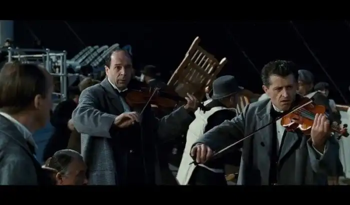 Струнный квартет, услаждавший слух пассажиров "Титаника" в обеденных залах, действительно играл на палубе до последнего. Не будучи членами команды, музыканты во главе с руководителем квартета Уолласом Хартли имели полное право сесть в шлюпки. Но они предпочли продолжать играть, поддерживая людей, пока "Титаник" не пошел ко дну. Никто из квартета не выжил.