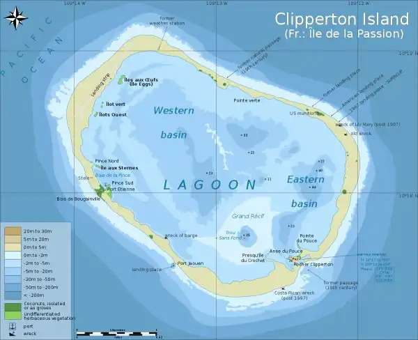 Официально остров был открыт французами в 1711 году, хотя имя свое, Клиппертон, он получил в честь английского пирата Джона Клиппертона, вроде бы проплывавшего мимо шестью годами раньше. Так или иначе, следующие сто с лишним лет остров никого не интересовал. В 1825 году на него впервые ступила нога человека, американца капитана Моррелла. А в 1858 году остров был аннексирован Францией.
