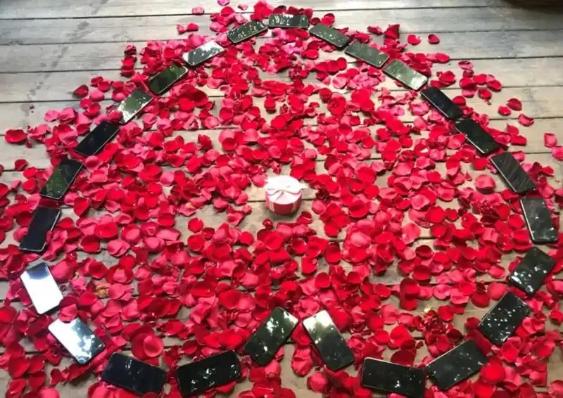 Молодой дизайнер из Китая, Чэнь Мин, сделал предложение своей девушке Ли, выложив на розовых лепестках сердце из 25 новых iPhone X, в центре которого разместил коробочку с кольцом. Увидев сюрприз, обошедшийся Чэнь в 31 500 долларов, Ли ответила согласием. Парочка подарила айфоны друзьям, помогавшим в организации оригинального предложения.
